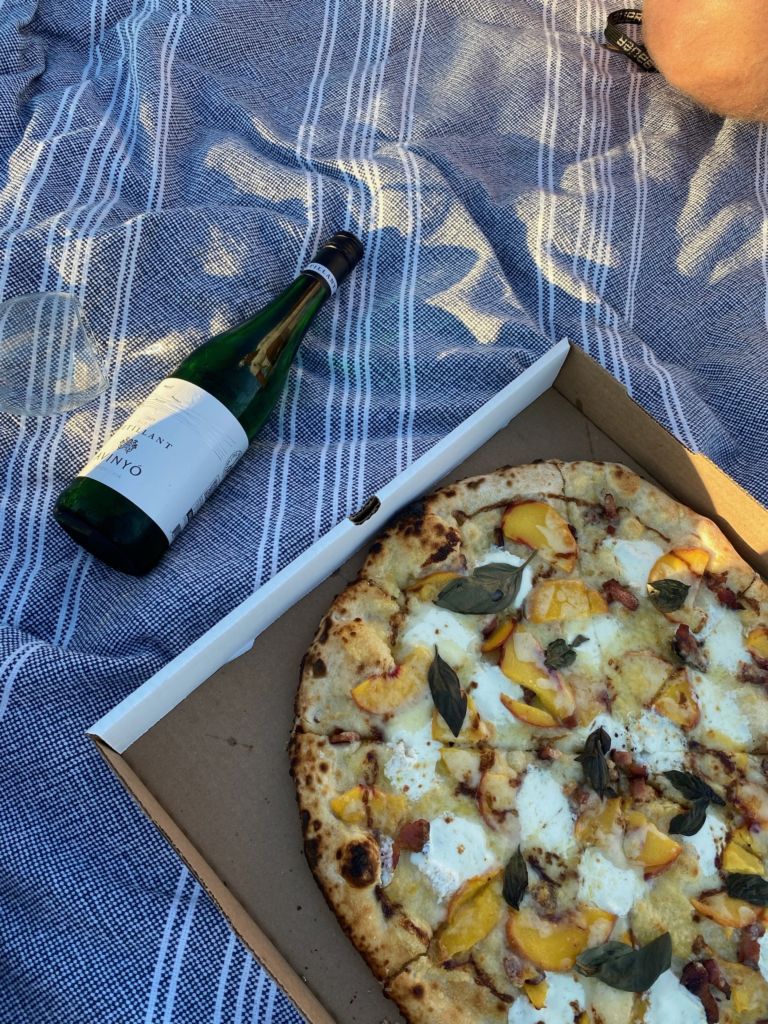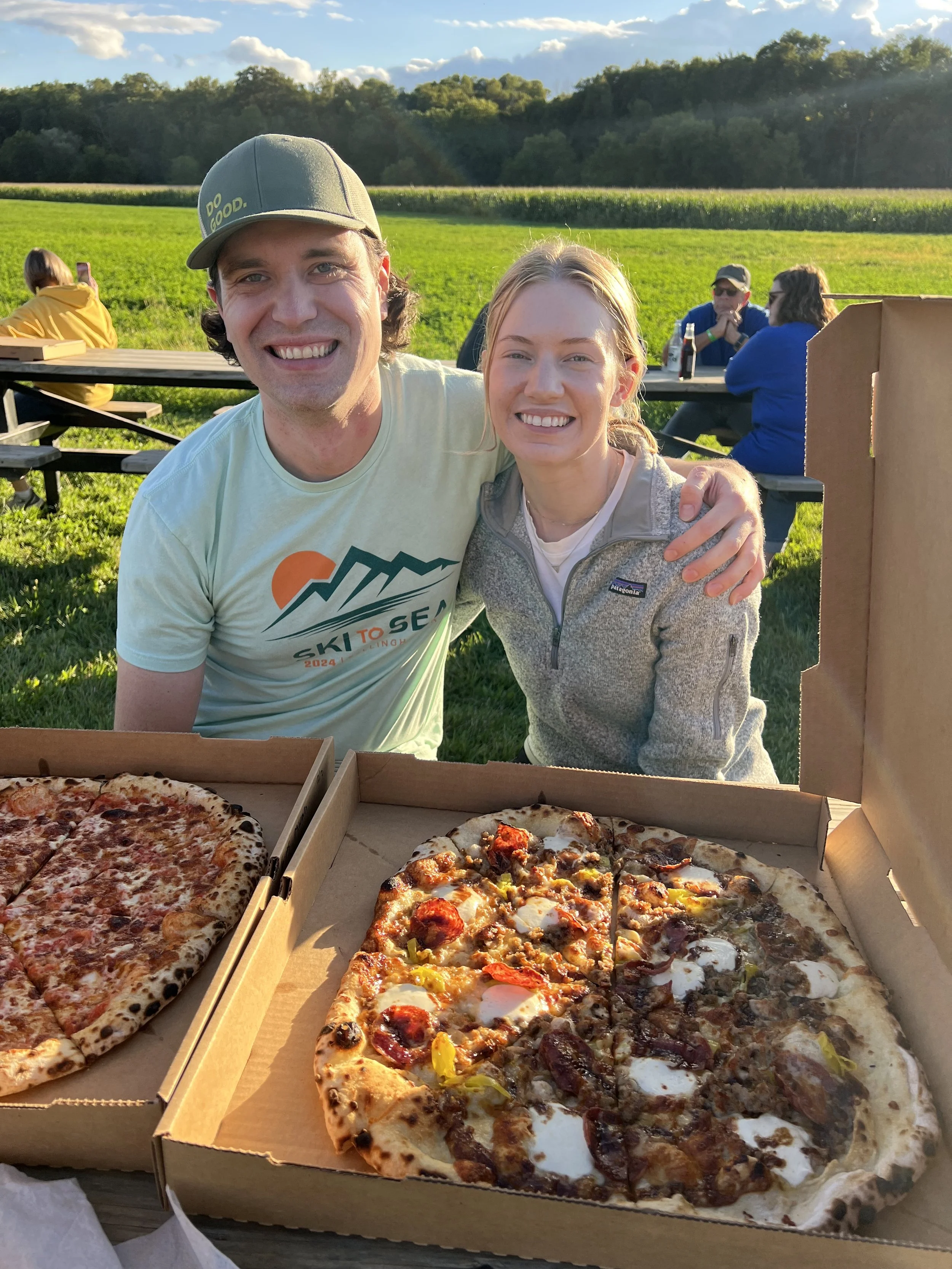 All pizzas are served in a cardboard box and can be enjoyed on the farm or taken to go.